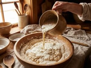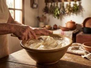 4. Disolver la sal en la leche cuajada y añadir a la preparación junto con el almidón y el anís.