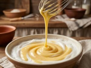 2. Agregar los huevos batidos a punto cinta y mezclar bien.