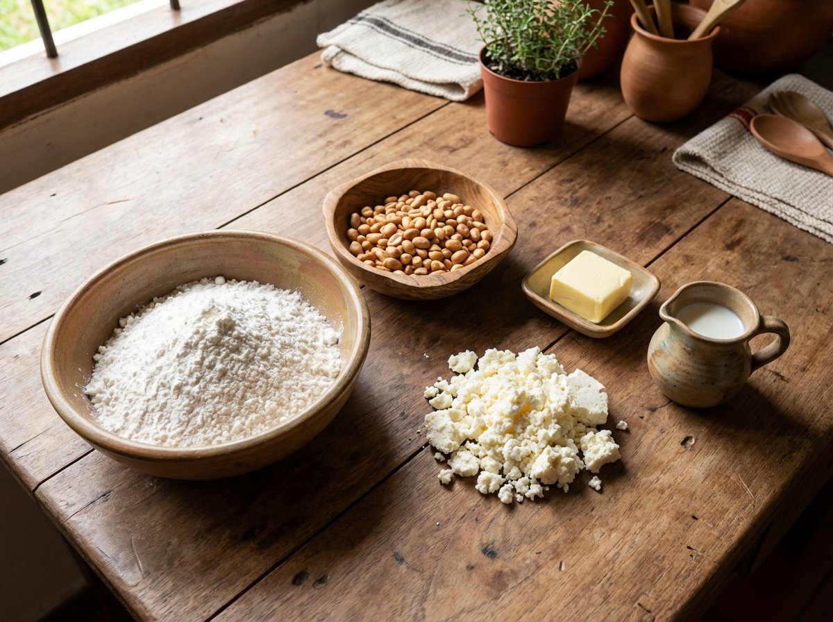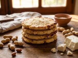 - Mezclar ingredientes secos:En un bol grande, colocar el almidón de mandioca, el maní molido, el queso desmenuzado y la sal.