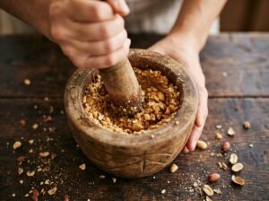 - Preparar el maní:Tostar el maní (si no está tostado) y molerlo hasta obtener una textura gruesa.
